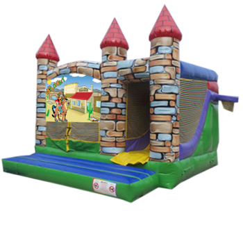 Description: We all love this around here cowboys nothing better to play in the garden. Theme your whole party and start with this amazing castle. Make sure the indians don't attack. Suitable for children of all ages with a great high internal slide to add another attraction to your child’s party.