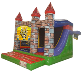 Description: This castle is a new addition this year and offers a huge bouncing area with a really safe enclosed slide area along with basketball hoop to the side. This castle is suitable for children of all ages and is sure to be a bit hit with all minion fans.