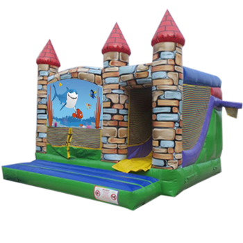 Description: For all the underwater fans out there we have Nemo and his mates swimming about on the front of our amazing castle with high internal slide. Two sizes to choose from.